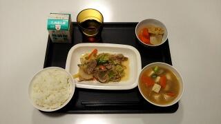 ご飯、三平汁、肉野菜炒め、大根とがんもどきの煮物、牛乳でした。