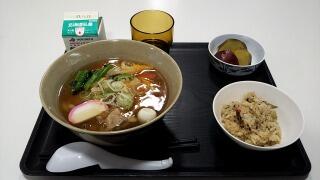 五目あんかけうどん、醤油ごはん、さつまいものレモン煮、牛乳でした。