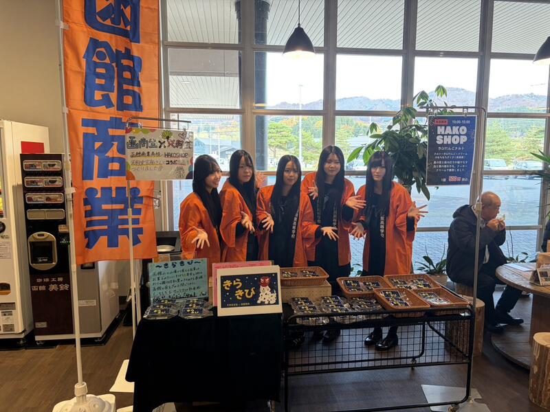11月8日(土) 七飯町峠下で109”Ziel(テングヅィール)・道の駅なないろ ななえ・THE DANSHAKULOUNGEによる「にこにこ○しぇ」イベントに株式会社天狗堂宝船様のご協力をいただき、3年4組(流通ビジネス科)課題研究A班とB班が参加して参りました。