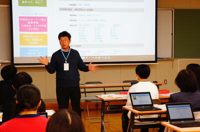 内容は、札幌販売士協会の理事長の佐藤 冬樹様による講座で、1年生に対して「日商リテールマーケティング検定」取得のメリットのお話しを実施していただき、2年生に対しては、札幌販売士協会の副理事長の神田 勲様による、来年に受験する日商リテールマーケティング検定対策講座を講義していただきました、